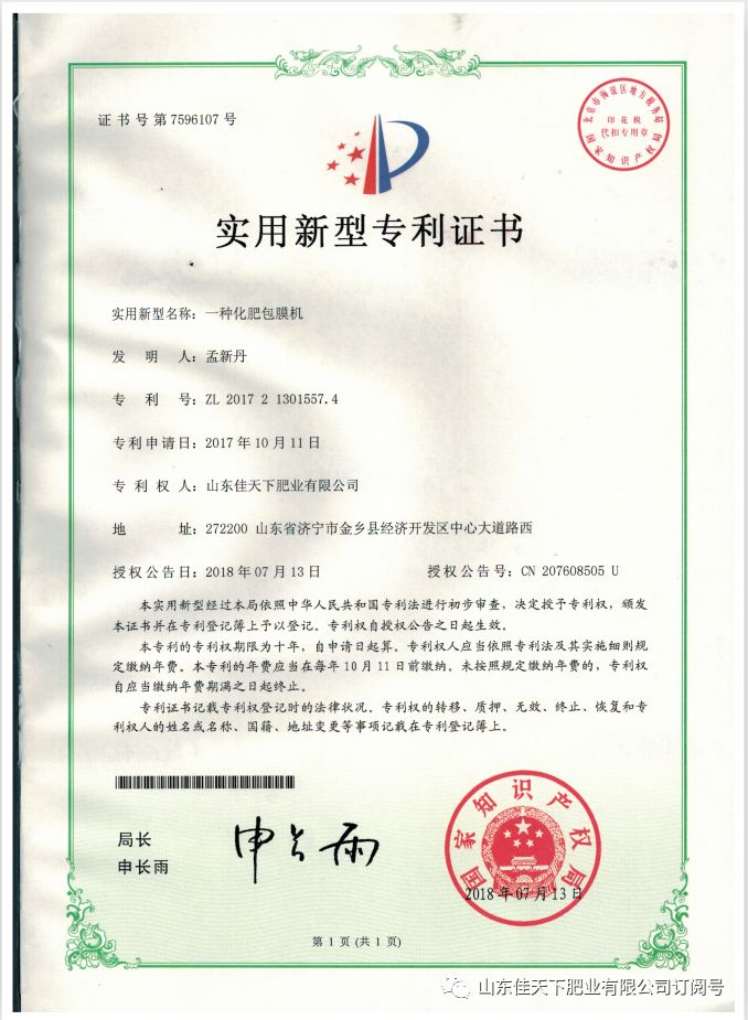 山东佳天下肥业有限公司与中国农业科学院新型肥料研究所中心致力于新型肥料的研制与开发,在普通尿素中科学添加双酶成分,含生物辅酶及主酶,双歧因子等营养成分,使其具有如下特点: