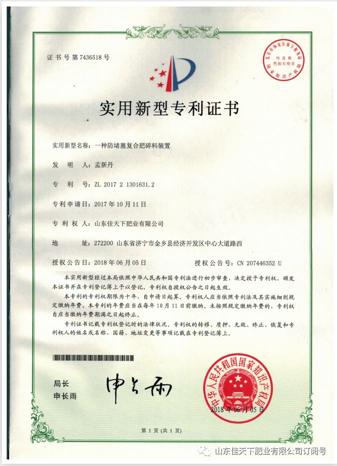 佳天下专利证书及荣誉证书集锦