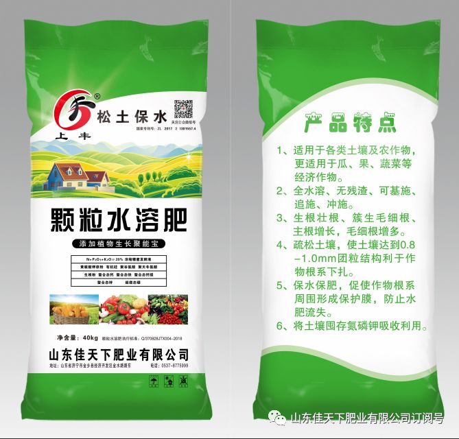 佳天下保水松土肥: 适应于酸性,中性,碱性,粘性,沙性等各种土壤,能有效调理、改善土壤团粒结构,消除土壤板结,增强土壤渗透能力,能缓解因除草剂及重茬对作物的危害,促进土壤中有益微生物的生长发育,促进作物生长,抗病能力增强,增产效果明显!