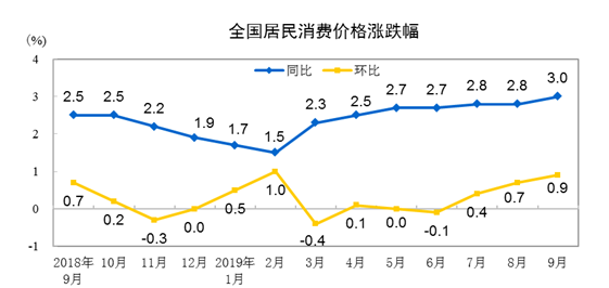 10月15日国家统计局发布了9月份的CPI,已经上涨到3%,这意味着物价还是处于上涨的状态。