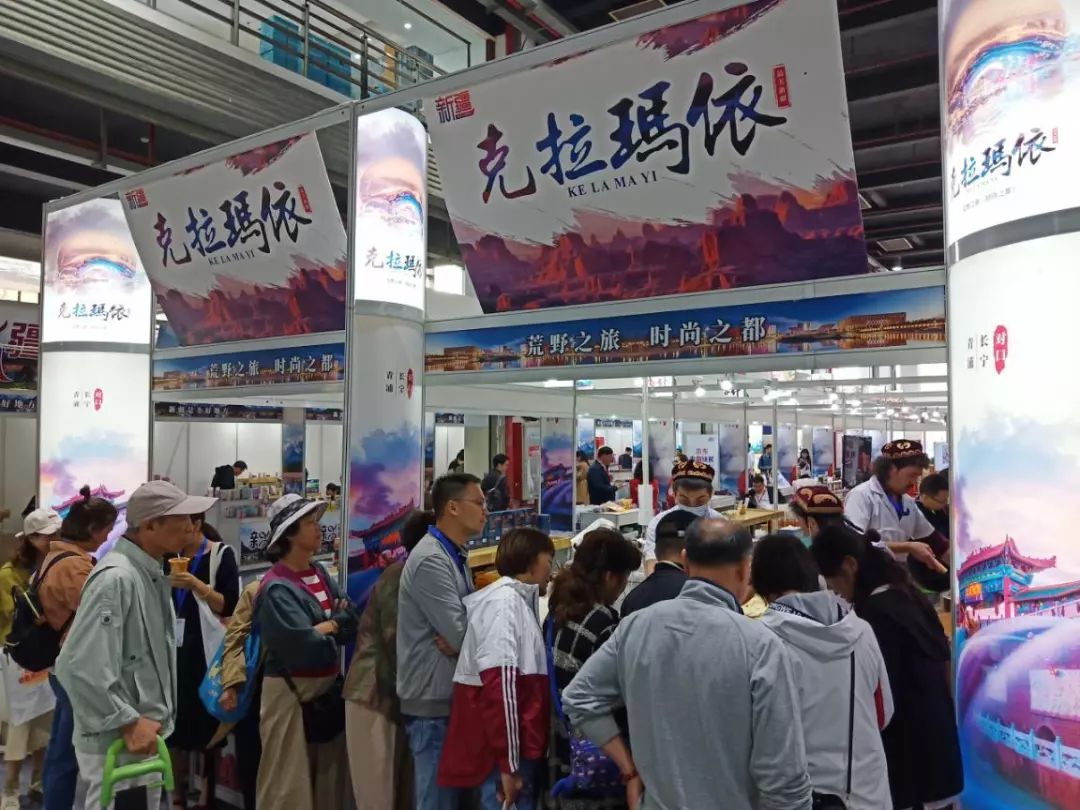 展会上,克拉玛依绝对算得上是个网红展位,满满的新疆特色了吸引大量市民驻足,摊位前总是人头攒动。