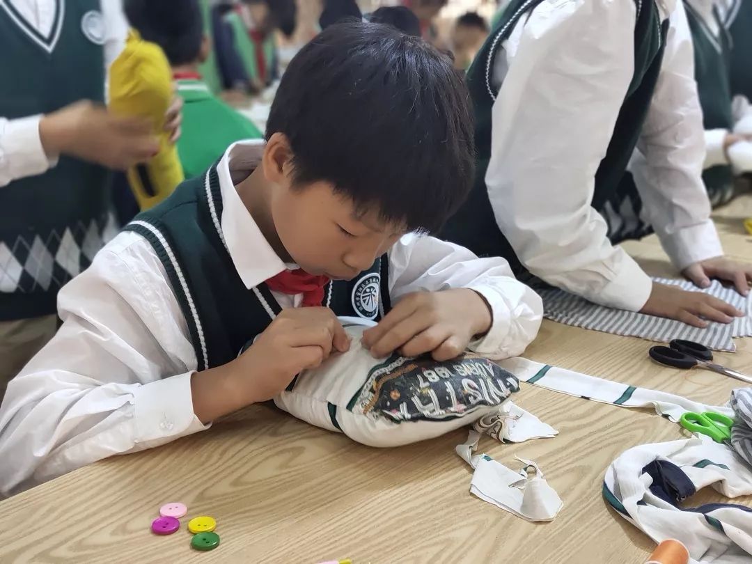 让同学们大呼过瘾的是,在设计师们的带领下,所有人拿起了针线和剪刀,脑洞大开,一个小时过去了,自己带来的旧衣服变成了一个个漂亮、别致的抱枕,手袋……一个个专注的眼神,一次次奇妙的想法,让在场的设计师们也啧啧称赞。