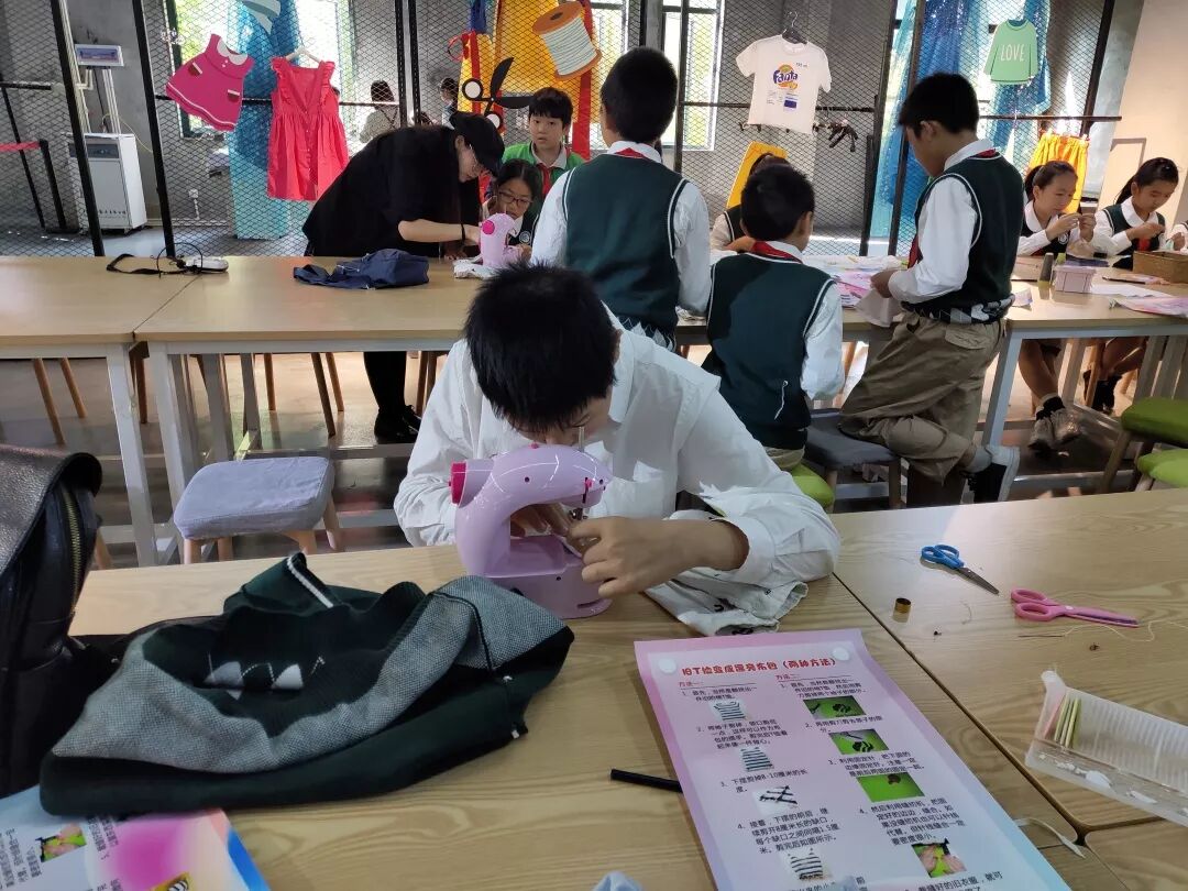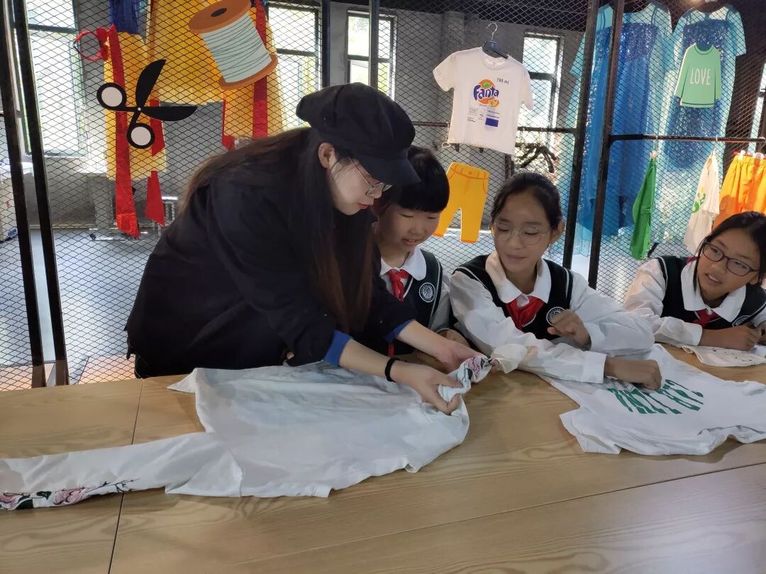 同学们首先认真地观看了“一件衣服诞生记”,然后在基地教师的带领下实地参观了成衣制造车间,同学们纷纷惊呼:原来衣服就是这样一件一件被制造出来的!