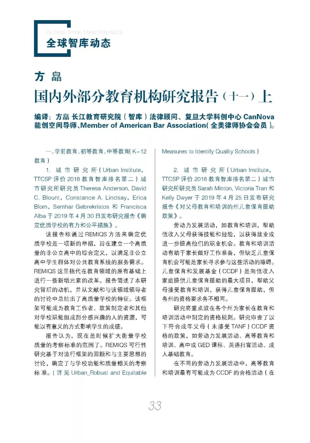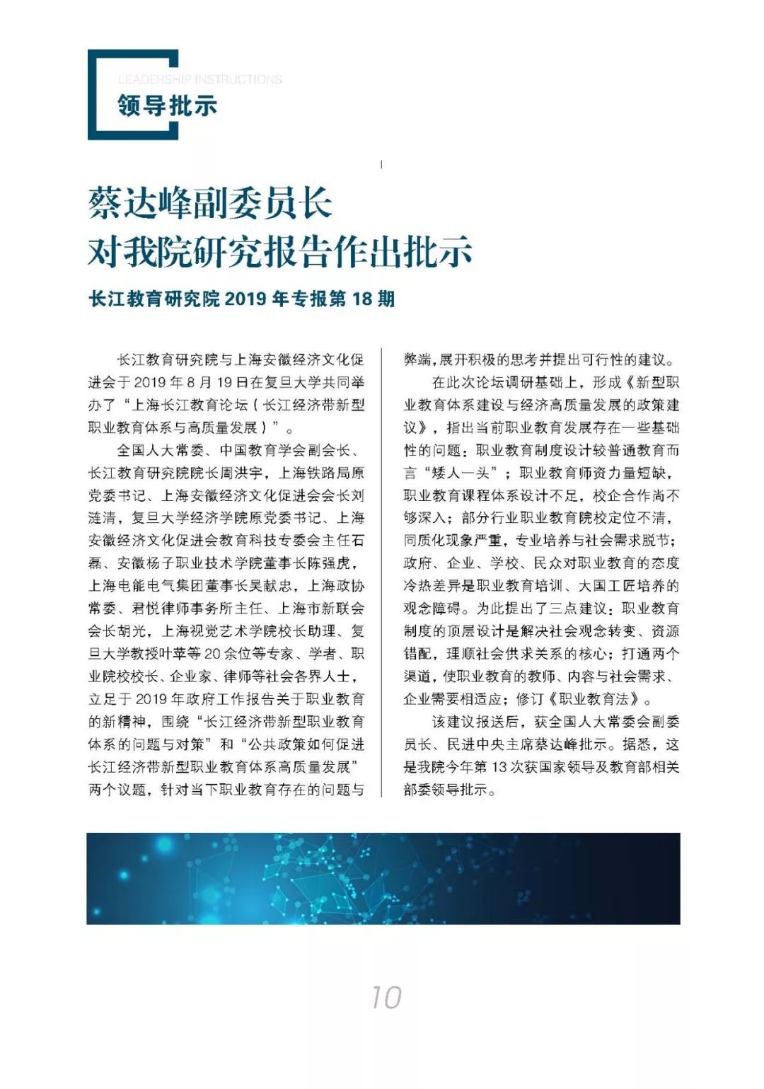 2016年、2017年连续两年在中国智库索引评选中社会智库类MRPA测评综合排名全国第三 ,MRPA资源效能测评全国第一 。2017年入选中国社会科学评价研究院“2017年度中国核心智库”。2018年在中国智库索引社会智库类PAI值评分榜全国第二。目前,长江教育研究院正在按照中央关于加强中国特色新型智库建设的要求,进一步加强与教育行政部门、科研机构与高校的战略合作,更好地服务于教育改革和发展,力争把自身打造成国内外一流的智库。