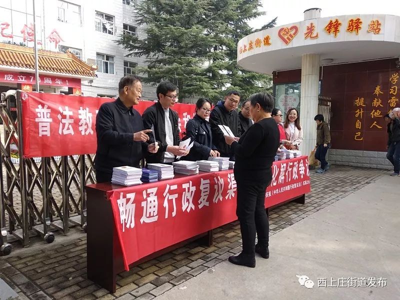 《中华人民共和国行政复议法》实施20周年之际,为进一步宣传行政复议制度的独特优势和功能作用,扩大行政复议在辖区群众中的知晓率,引导广大人民群众通过行政复议方式维护自己的合法权益,努力营造依法解决行政争议的良好氛围。2019年10月18日上午,西上庄司法所充分发挥基层司法所的职能作用,在西上庄村开展了一次以“畅通行政复议渠道,依法化解行政争议”为主题的法治宣传活动,此次活动还邀请了辖区各村(社区)法律顾问参加。