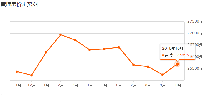 黄埔10月二手房均价 25698 元/m?黄埔9月二手房均价 25244 元/m?环比上月上涨 1.80% ↑同比去年同期下跌 2.90% ↓