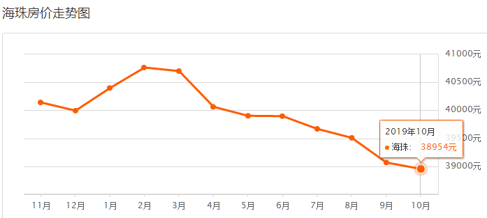 海珠10月二手房均价 38954 元/m?海珠9月二手房均价 39068 元/m?环比上月下跌 0.29% ↓同比去年同期下跌 4.16% ↓