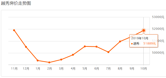 越秀10月二手房均价 51889 元/m?越秀9月二手房均价 51384 元/m?环比上月上涨 0.98% ↑同比去年同期下跌 0.94% ↓