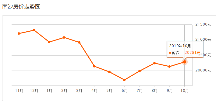 南沙10月二手房均价 20281 元/m?南沙9月二手房均价 20129 元/m?环比上月上涨 0.76% ↑同比去年同期下跌 3.45% ↓