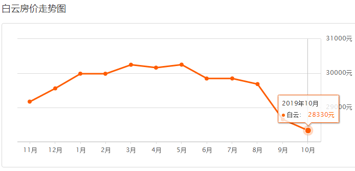白云10月二手房均价 28330 元/m?白云9月二手房均价 28653 元/m?环比上月下跌 1.12% ↓同比去年同期下跌 3.48% ↓