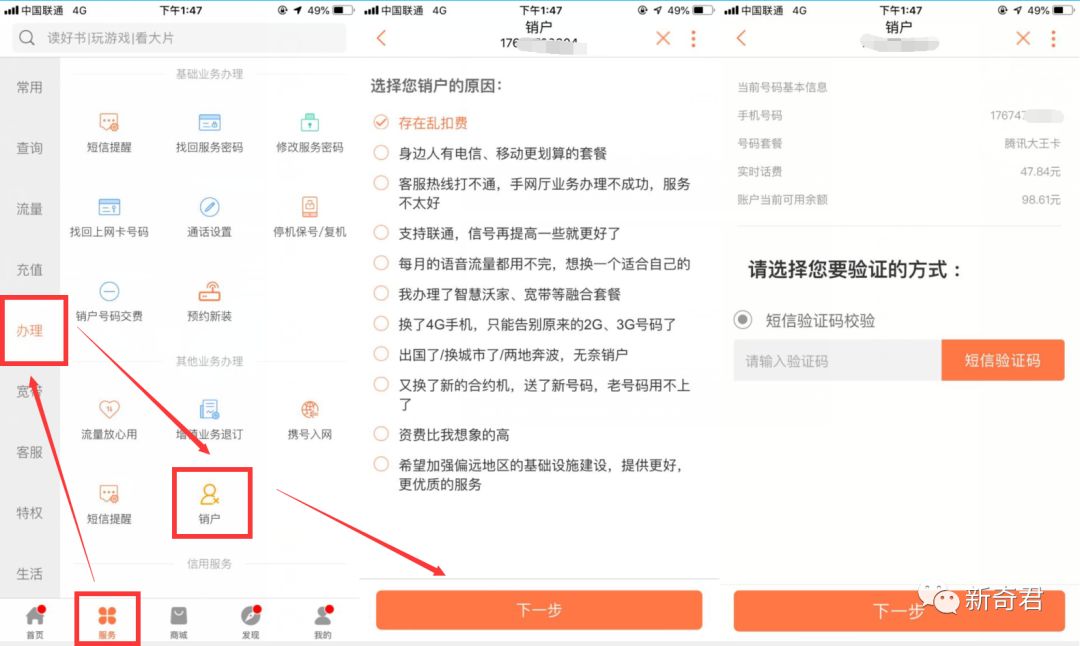 打开中国联通营业厅APP--【服务】--【办理】--【销户】