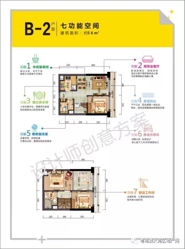 公寓20/57/72㎡ 均价3.5万(部分送装修材料)。20㎡户型,为深圳首发,规划出四层功能空间,特别是地柜及升降台收纳空间布局让人大开脑洞,引发热烈点评;57㎡3房2卫户型设计有五大功能空间、两卧功能,面宽进深比大于1:1的营造出舒适的舒适感,令人大开眼界,70平四房两厅两卫一阳台。