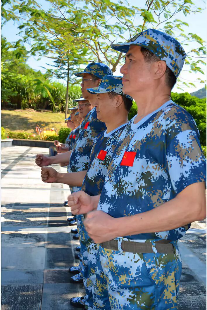 ▲ 局领导在军训当中作为班组的排头兵,与中层干部学员同视为普通一兵,同训同练,听命教官口令,带头高标准严要求做好规范动作!