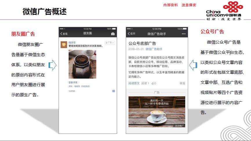 联通微信广告服务,依托联通丰富的数据及动态模型算法,以数为智,精准定位目标人群,定制广告人群。