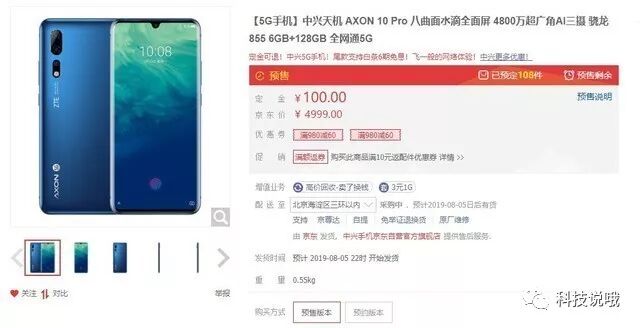 俗话说,第一步是最好的,制造商们现在正争先恐后地在5G时代抢占先机。中兴的5G型号,中兴AXON 10 Pro 5G,已经接受了4999元的预订,首付只有100元。尾款将于8月5日0:00预售,10点正式发售。