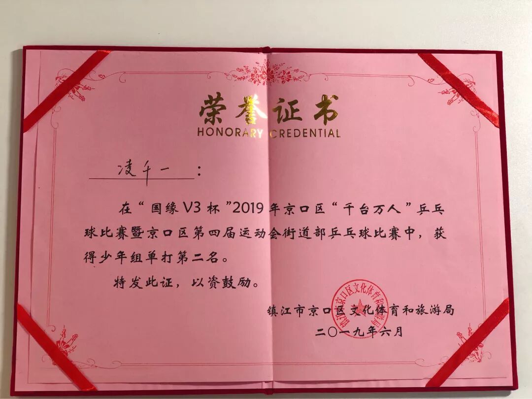 渐渐的,她的球技得到了提升,连续3年代表江科大附小获得京口区小学生乒乓球比赛单打冠军,江苏省冠军赛单打冠军,江苏省第十九届运动会女子10岁组团体和单打铜牌,江苏省乒乓球锦标赛团体金牌和单打铜牌、江苏省联通杯10到15岁组单打冠军。