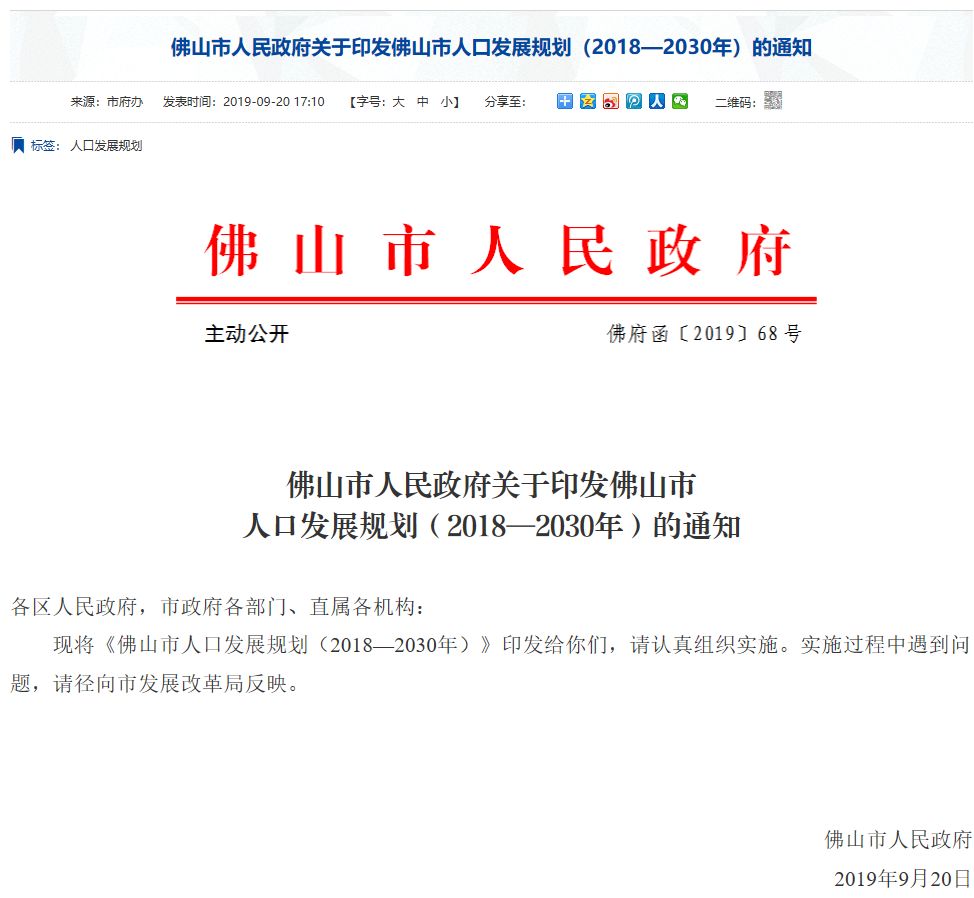 近日,《佛山市人口发展规划(2018—2030年)》(下称《规划》)正式公布,详细解析了当前佛山人口的发展现状、未来规划。