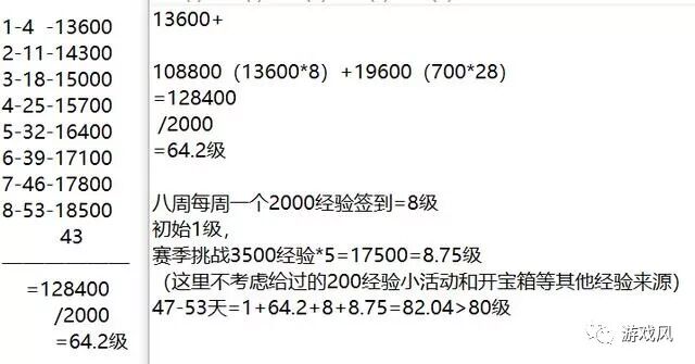 一共八周就能搞到升到65级的经验,再加上能升近九级的赛季挑战任务和开通战令专属的2000经验签到礼包轻轻松松80级啊。