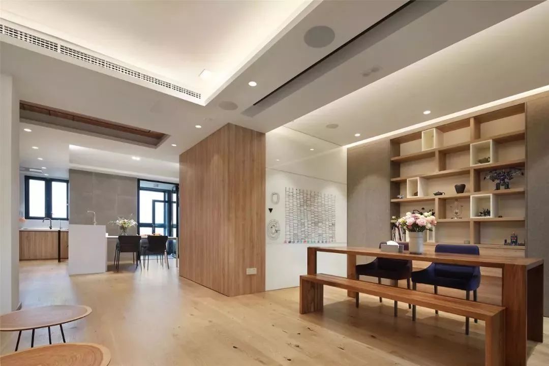 //三、内机装在侧边吊顶上//根据现场的情况,比如在客餐厅中间吊顶之间、或是阳台一侧的吊顶上装内机,让风对着整个客厅横向吹,这种相对来说整体空间的温度会均衡一点。