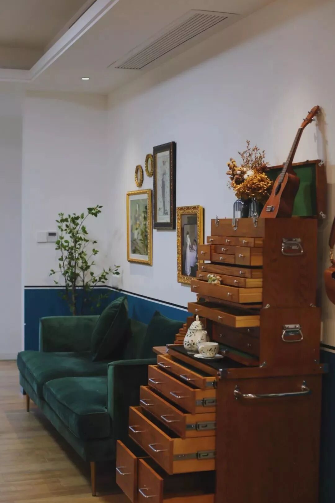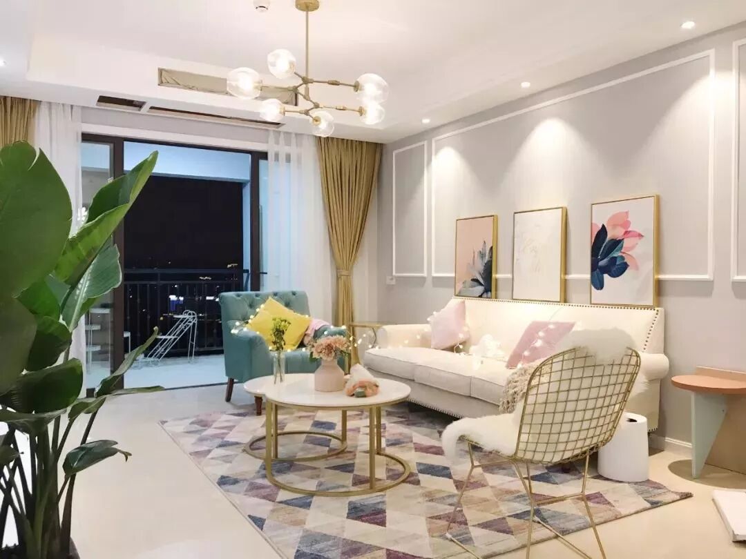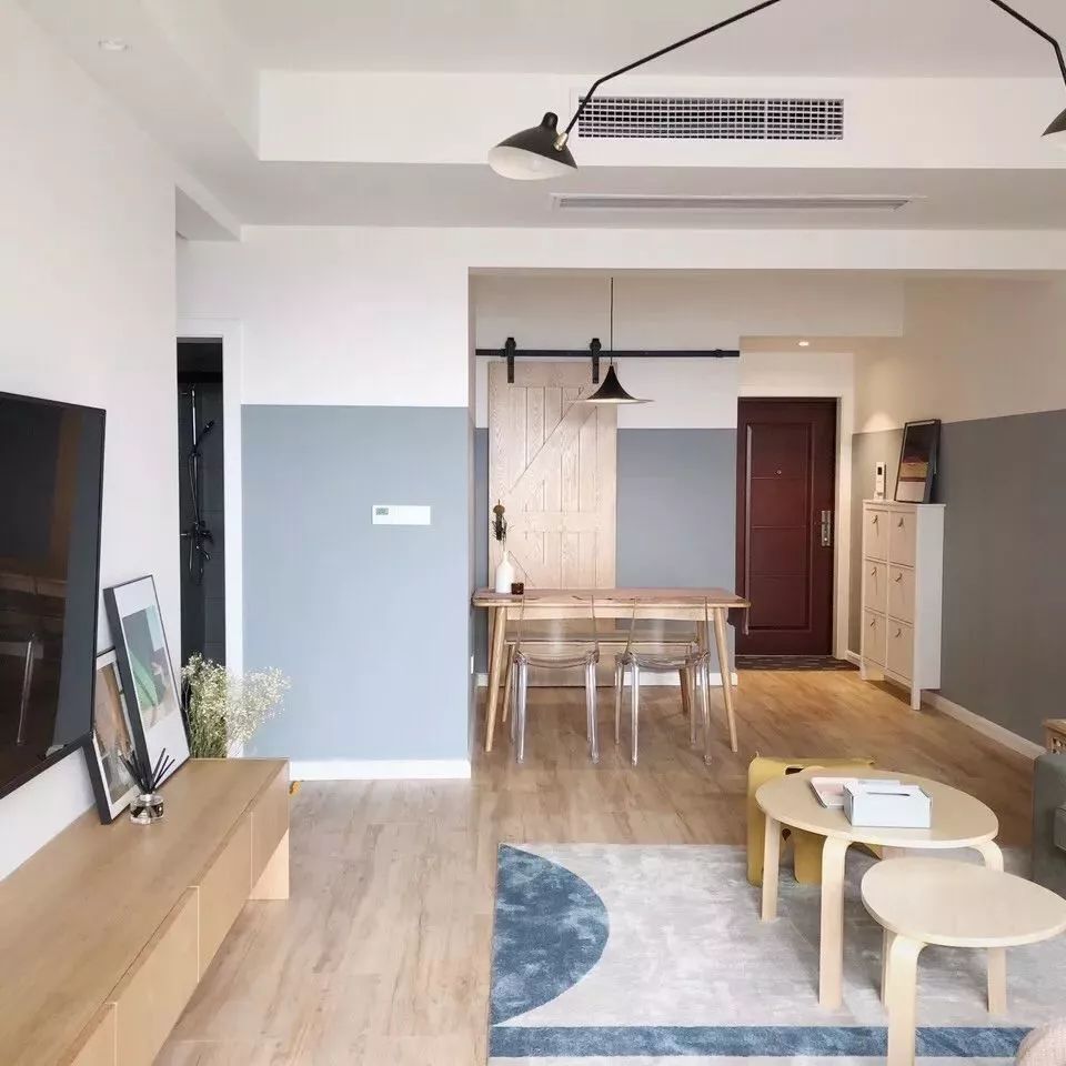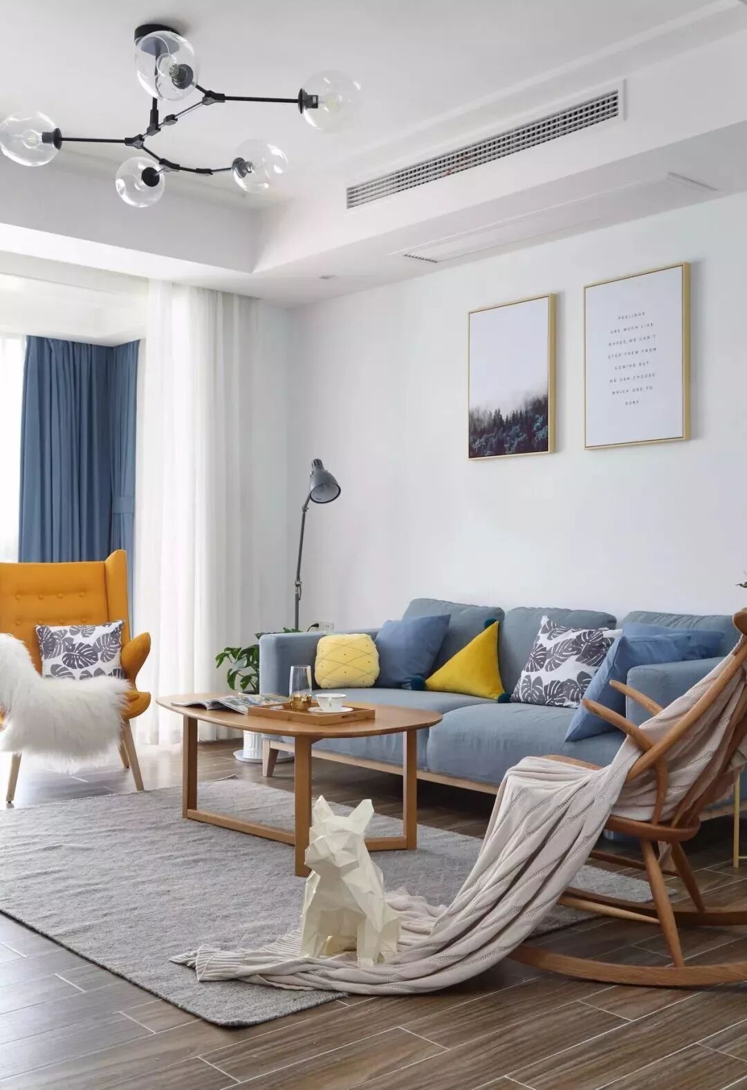 //一、内机装在沙发墙上方//中央空调一般是下回风的,所以装在沙发上方的话,会是一种较为舒服的选择,这样出风口是对着电视墙一侧吹,给人以有凉感无风感的体验。