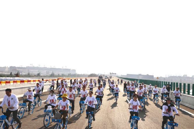 10月19日,最新升级版哈啰单车第四代车现身甬台温灵昆-苍南路段,庆贺道路即将通车致敬广大背后最美公路建设者。现场,100名参与道路建设身着统一白色文化衫活力启程,在高速公路上追风驰骋,组成一道亮丽的风景。