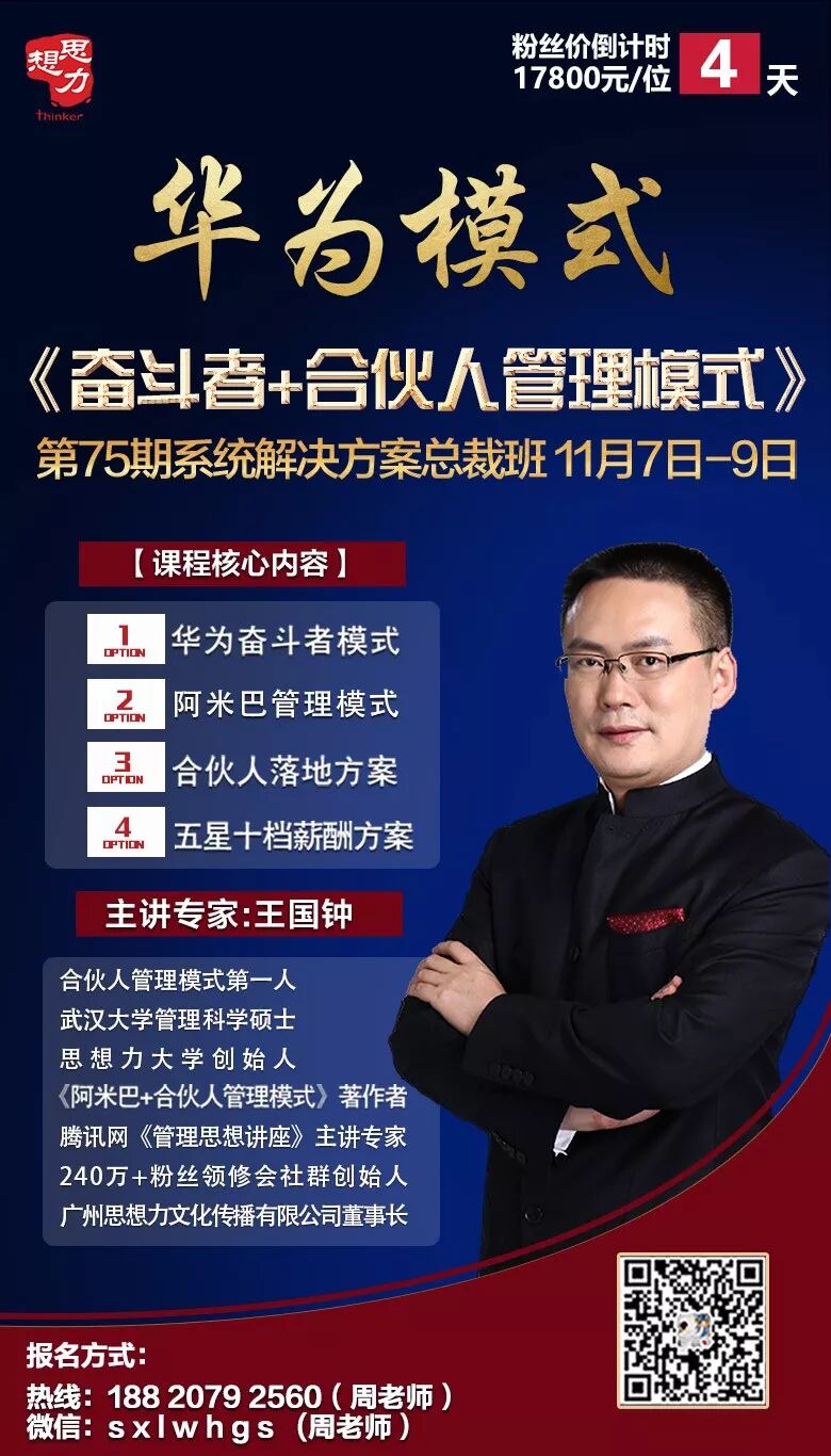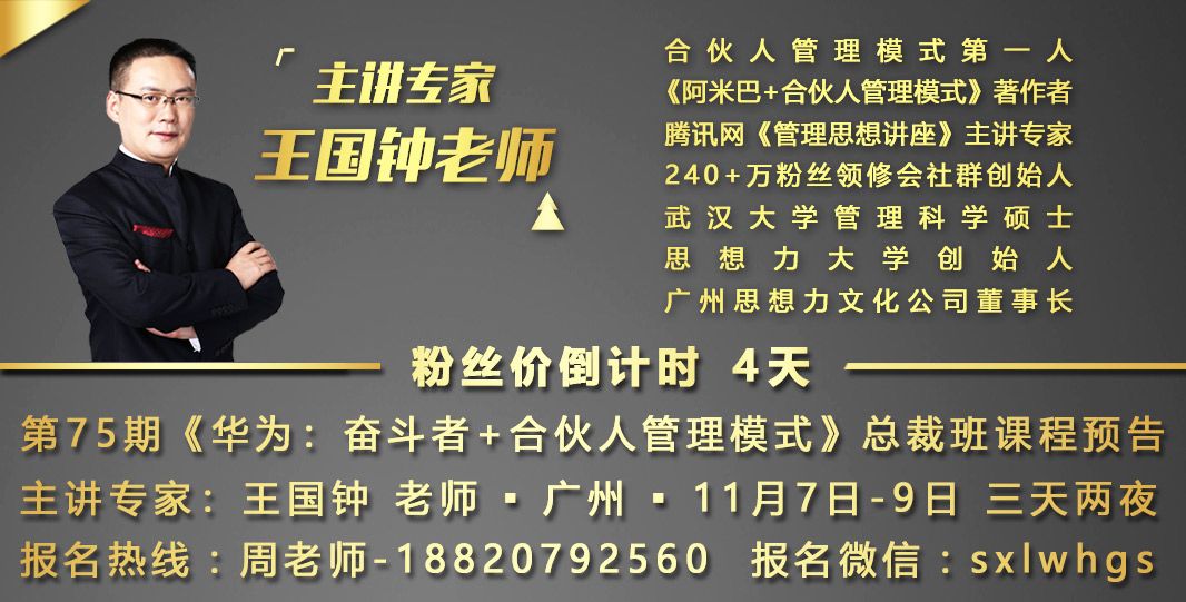 【1】珠海亚华集团,自2016年先后三次安排各分公司高管团队来广州学习王国钟老师的课程,2016年导入《华为:奋斗者+合伙人管理模式》,不到2年内做到业绩提升50%,而且公司文化积极向善!