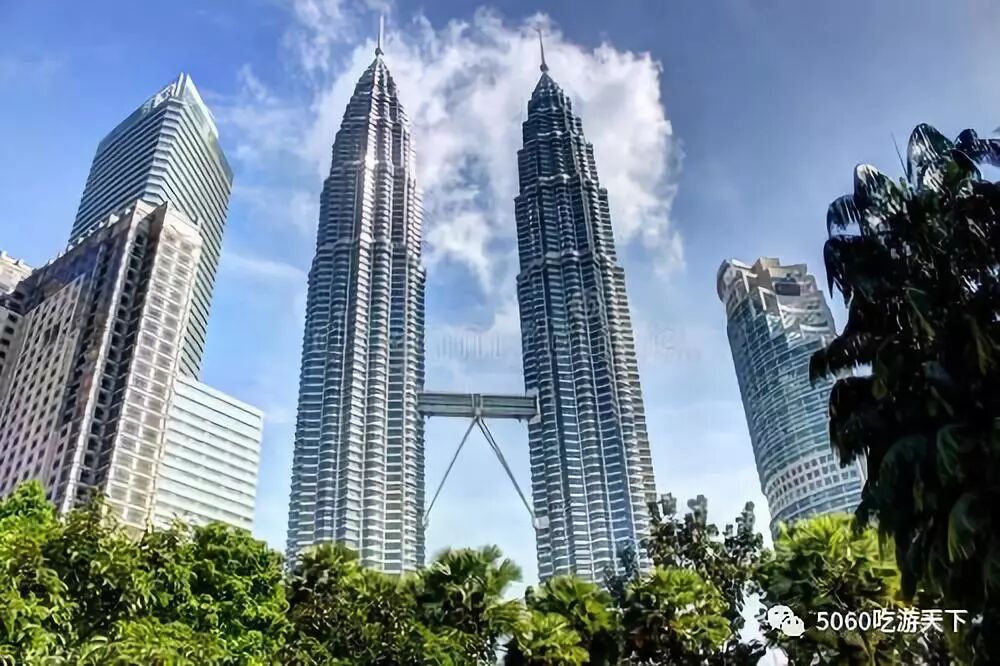 【马来之巅,双峰塔】外观照相,“双峰塔”以452米的高度成为闻名全球的马来西亚现代地标。连接双塔的天桥寓意通往未来之门。双峰塔是吉隆坡城中城的焦点,拥有配备当下先进科技设施的吉隆坡会议中心、阳光购物广场、环境优美的公园。