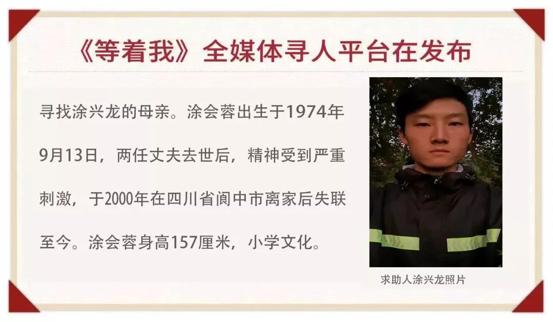 我叫涂兴龙,我来寻找我的母亲涂会蓉。