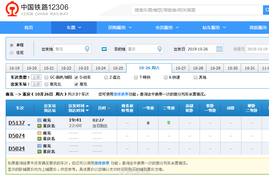 从10月25日起,原南充站开往重庆的K字头普通列车停运,增开D字头动集。车次如下,南充站始发终到重庆北一对。车次为D5072/D5074,一对为成都东始发终到。车次为D5022/D5024,其中成都东始发终到行经线路为达成-南高支线-襄渝铁路终到重庆北。