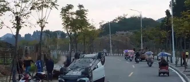 近日,有网友爆料:江南镇又出车祸。据说事故原因是后座有人传递物品,驾驶者注意力不集中,等他反应过来时已经为时过晚,随后小车失去控制,导致翻车!车成这样了,损失应该也不轻。