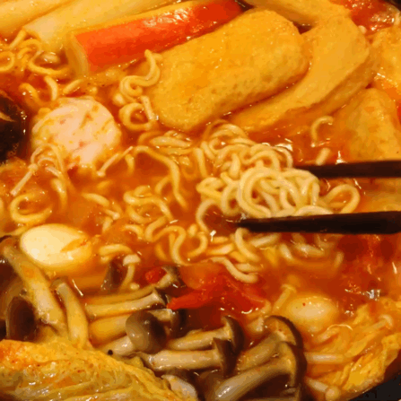 最近降温了不少,热热的部队火锅,汤底加了番茄和泡菜之后吃起来酸酸辣辣的,一碗下肚暖胃又舒服,还可以任意放各种自己喜欢的食材,真的超级适合这个季节!!