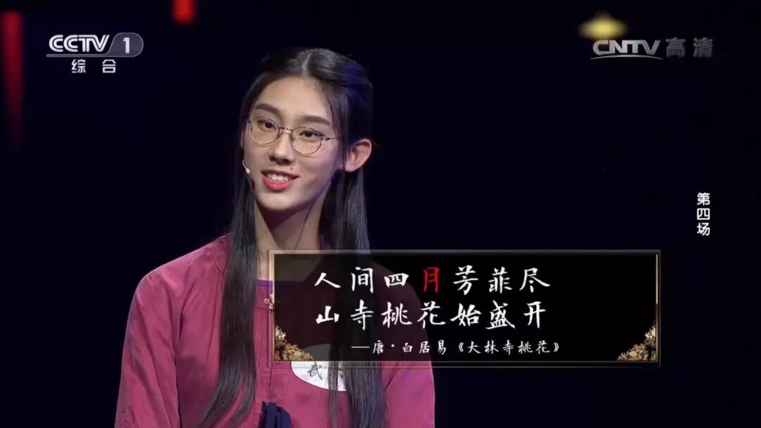 央视《中国诗词大会》第二季总决赛的节目中,武亦姝凭借强大的实力和淡定的气魄,成功夺冠。网友纷纷为她的才情所折服,称其"这个00后美少女满足了人们对古代才女的所有幻想。"