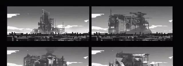 电影的概念设计周期则划分为第一个阶段的全片keyarts;和第二个阶段重点概念设计项定调,和次要设计项全面推进;第三个阶段,重点概念设计项细节拆分。