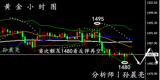 多单计划:金价1478-1480进场,止损4个点,目标1493-1495.