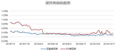 保持类指标:保持类指标呈明显改善趋势,其中语音掉话率改善幅度38%,PS掉线率改善幅度62%;