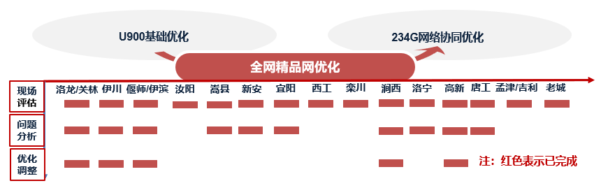 下阶段,洛阳联通网络优化/客户响应中心将持续执行U900网络的优化提升工作,为后续900M的演进夯实基础;同时将陆续组织开展多项网络专题优化提升工作,力求以深入的分析研究,挖掘网络潜在问题, 对症下药,实现网络效能最大化,切实提升用户感知,为洛阳联通网络的持久、健康发展打下坚实的基础。