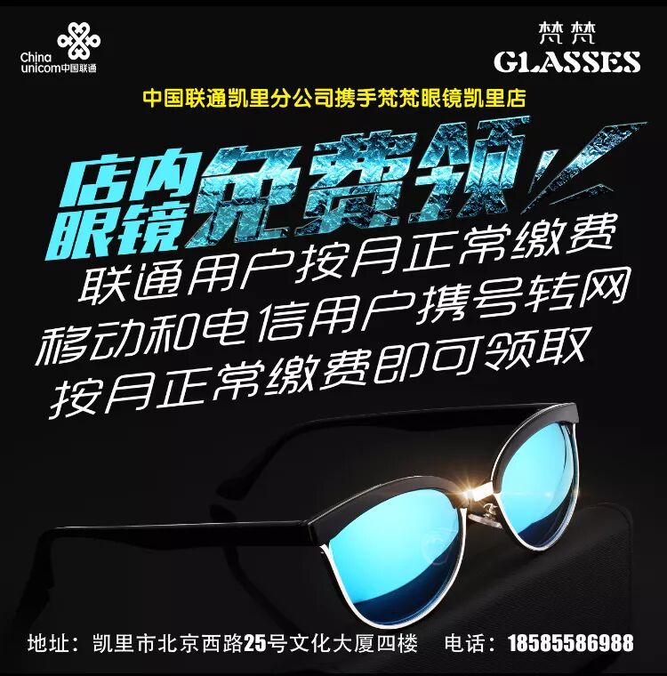 同样都是交话费,谁还花钱买眼镜,中国联通直接办理(中国移动、中国电信用户需携号转网)领眼镜活动持续进行中……