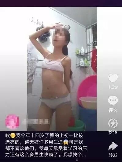 这个才初中的孩子,穿着三点式出镜,丝毫不觉得有什么不对。