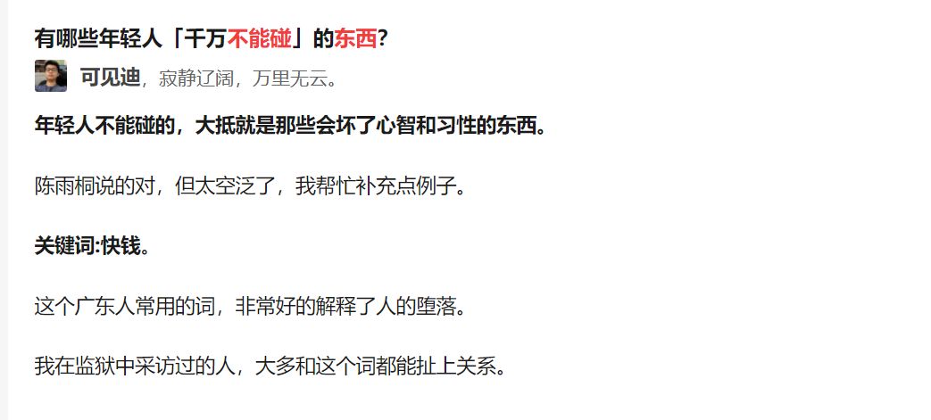 知乎上有一个问题:“有哪些年轻人【千万不能碰】的东西?”