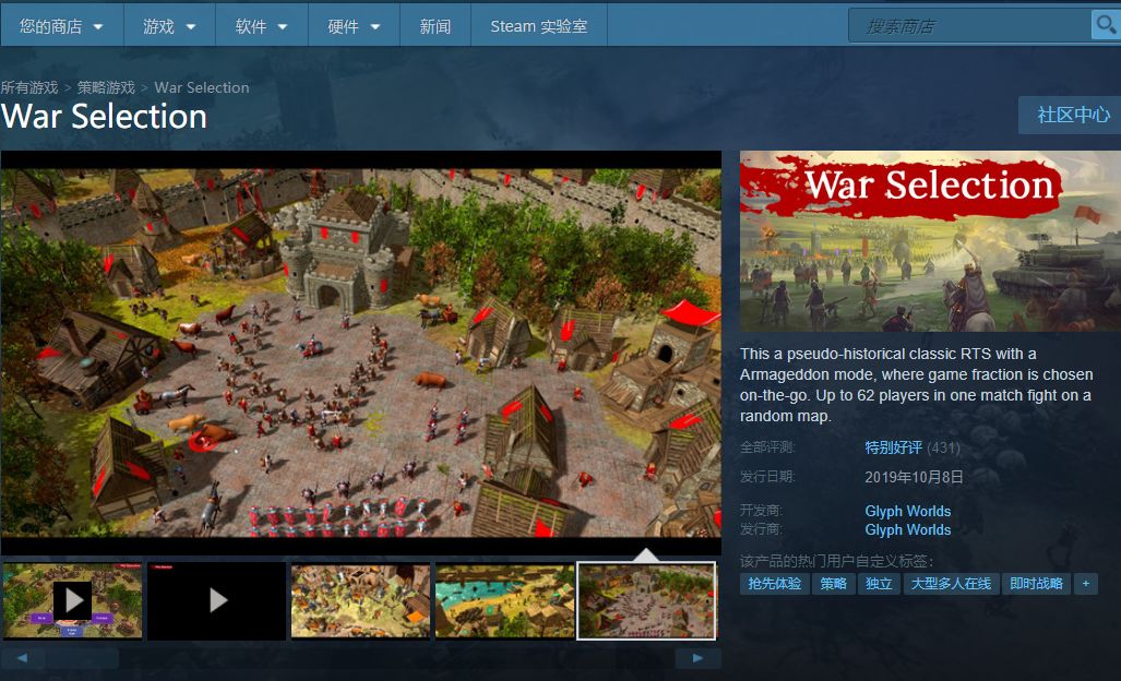 近期,就有一款名为(War Selection)战争选择》的游戏登陆了Steam,《War Selection》是一款由俄罗斯制作组打造的非历史性独立即时战略游戏,内含8个历史时代,每位玩家都将由石器时代开始,通过建设基地,收集资源,研发科技及军事单位,逐步攀升到现代文明。不少玩家因其画风和《帝国时代》很像也称它为“白给版帝国时代”。它和传统的RTS一样需要玩家建设自己的基地,而且这款游戏是免费的...