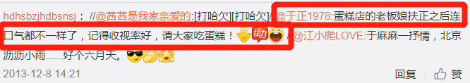 “蛋糕店的老板娘扶正之后连口气都不一样了,记得收视率好,请大家吃蛋糕!”