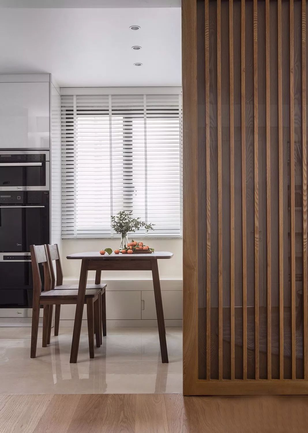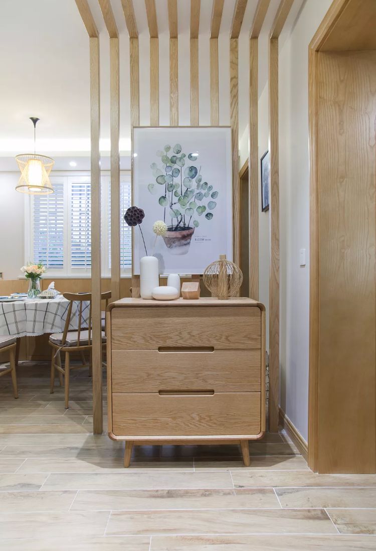 玄关隔断:玄关作为入户第一眼看到的空间,决定着进入门后的情绪感受。玄关隔断需注意以浅色系配色为主,隔断的设计可避免公共区域处一览无遗的状态,无形中增加空间趣味性,且保护主人隐私。