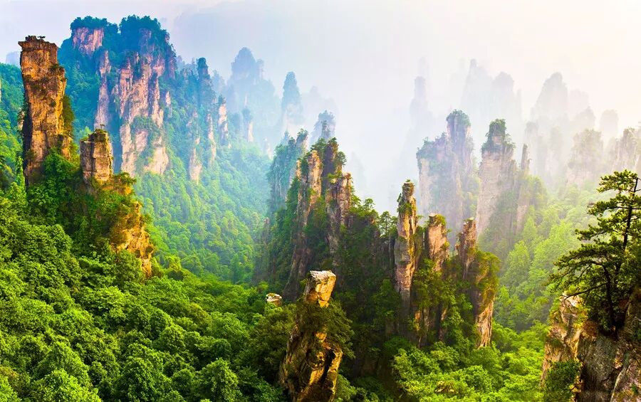 袁家界位于国家森林公园北部,被称为神秘的“潘多拉世界”。在这儿可探寻《阿凡达》中的群山漂浮、星罗棋布的玄幻莫测世界。若是小雨或雨后的天气,更能赏到云雾飘绕,弥漫峰峦叠嶂的迷魂美景。著名的哈利路亚山、气势磅礴的迷魂台、天下第一桥等空中绝景都是热门景点。