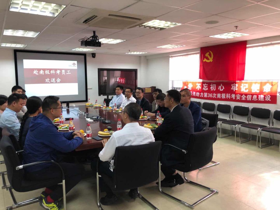 10月18日,网管中心与东区分公司为两位即将出征南极的同事举行了隆重的欢送会。会上,东区分公司销售经理介绍了此次中山站信息系统建设项目的概况,作为上海联通第二次中标的南极科考建设项目,也是联通人第一次赴中山站参与基地建设。曾执行第32次南极考察建设任务的张杰,分享了他在南极工作、生活的心得和趣闻,为两位同事加油打气。