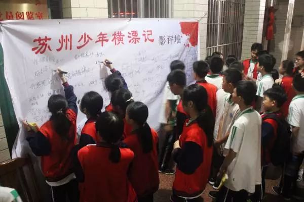 10月17日晚上,岑溪市第二中学的学生看完了电影《苏州少年横漂记》后兴奋不已,走出多媒体教室,纷纷拿起签字笔在门口悬挂的影评墙上留言。