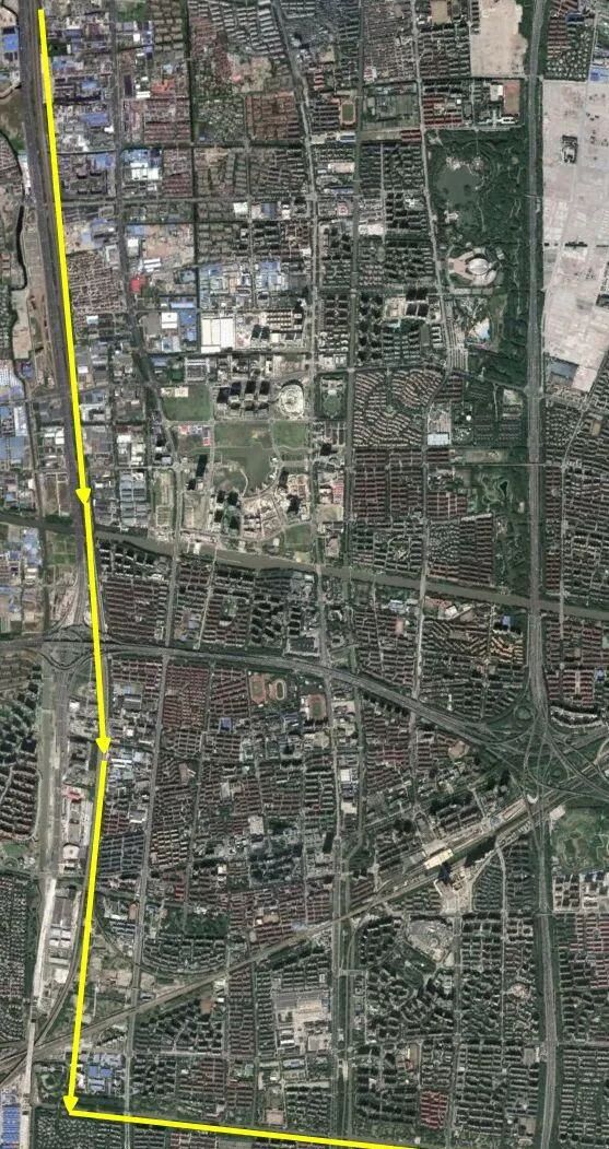 上海轨道交通机场联络线经过莘庄地区的卫星图如下所示。