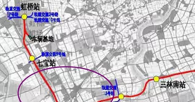 上海轨道交通机场联络线的走向如图所示,紫色线圈就是莘庄区域。