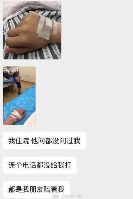 爆料者还拿出了住院照片和聊天记录,称自己住院期间男友连个电话都没打过。