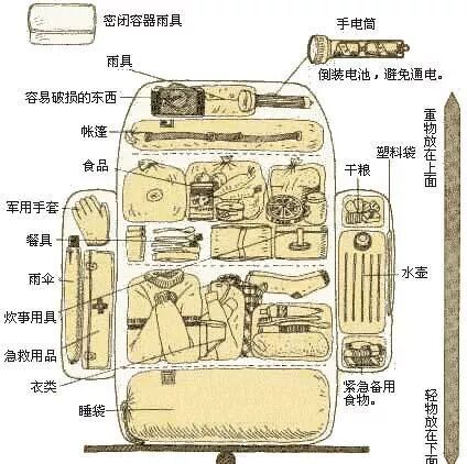 1、背包:用来徒步过程中背负(25升左右)水,路餐;