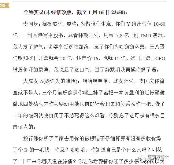 下图为当时投行女和李国庆对骂的节选原文,顾颖琼博士觉得网络真伟大!简直什么都可以永久保存!